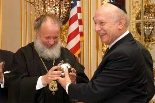 Нью–Йоркский раввин дарит Кириллу Гундяеву яблоко из чистого золота.