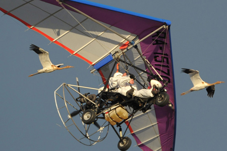 Владимир Путин по пути на саммит АТЭС во Владивосток принял участие в эксперименте, проводимом российскими орнитологами в рамках проекта «Полет надежды» по спасению редкого вида журавлей — стерхов, сообщает пресс-служба Кремля. В рамках проекта президент России, находясь за штурвалом мотодельтаплана, совершил полет с птицами, указав им маршрут перелета на зимовку.