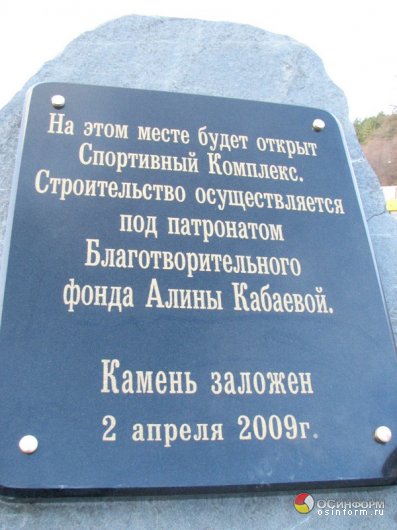 Алина уехала в Москву руководить страной, а на месте активно началось строительство под патронажем. И даже камень был водружен памятный для памяти, что тут начато строительство. То, что камень заложен 2 апреля 2009 года - понятно. А вот когда запланировано завершение строительства, про то на камне почему то не указали.