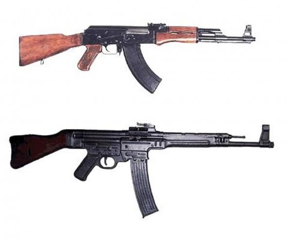Автомат "Калашникова" (вверху) и винтовка Sturmgewehr 44 (StG 44)