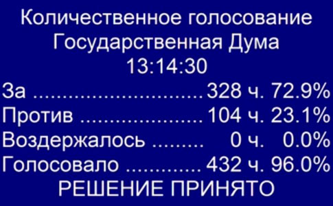 От правительства в Госдуму пришел министр труда и социальной защиты Максим Топилин. Он сказал, что современная пенсионная система сформировалась еще при Бисмарке, а повышать пенсионный возраст предлагал еще Черномырдин. «Мы хотим не просто сохранить уровень пенсий, а увеличить их так, как никогда в нашей истории не увеличивали», — объяснял сегодня в Госдуме необходимость повышения пенсионного возраста министр труда Максим Топилин. Так он охарактеризовал ежегодное повышение пенсии на тысячу рублей в течение ближайших лет. Все думские фракции, кроме “Единой России”, выступили против законопроекта. Почему голосование не поименное за такой важный законопроект - непонятно. ![]() В результате за документ проголосовали 328 депутатов (из 432 присутствующих), против высказались 104 члена палаты, воздержавшихся не было. Это примерно соответствует распределению мест в парламенте. По данным на 18 июня, в Госдуме у ЕР - более 330 мест, у КПРФ и ЛДПР - по примерно 40 мест, у “Справедливой России” - чуть более 20 мест. Единственным депутатом из«Единой России», который не проголосовал за законопроект, стала Наталья Поклонская. Не участвовали в голосовании восемь единороссов – Сергей Железняк, Николай Борцов, Григорий Балыхин, Виктор Игнатов, Виталий Милонов, Вячеслав Фетисов, Дмитрий Юрков и Олег Колесников. По словам источников телеканала «Дождь», отсутствие Железняка – одного из лидеров партии, заместителя секретаря генсовета – связано с тем, что он не хотел голосовать за повышение пенсионного возраста.