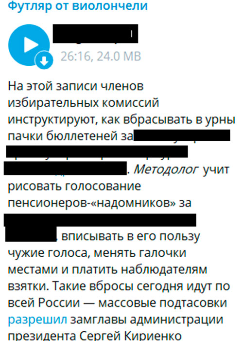 Telegram-канал «Футляр от виолончели» обнародовал аудиозапись, на которой неизвестные кураторы якобы инструктировали членов избирательных комиссий. Работа будто бы велась в пользу одного из кандидатов. Запись при этом низкого качества и, вероятнее всего, фейковая, а значит, вполне может пополнить копилку сегодняшних провокаций. «Инструктор» на записи объясняет, как нужно подтасовывать результаты выборов: давать взятки голосующим, менять отметки в бюллетенях в пользу «нужного» кандидата, использовать чужие голоса. Автор Telegram-канала утверждает, что по всей России осуществляются массовые вбросы за провластных кандидатов. ![]() Однако всем известно, что на избирательных участках присутствуют наблюдатели, в том числе от независимых организаций, которые следят, чтобы никаких вбросов не было, а правила голосования полностью соблюдались. Подозрительные случаи рассматриваются сразу, так что в законности выборов сомневаться не приходится. Ранее Telegram-канал «Бойлерная» сообщил подписчикам о том, что со стороны штаба Навального готовятся провокации, и в доказательство выложил аудиозапись инструктажа наблюдателей. Волонтерам рассказывают, что при малейшем подозрении в нарушениях они должны фиксировать все на камеру телефона и отправлять материалы в штаб. При этом наблюдателям не советуют пресекать нарушения законным путем, то есть заклеивать урны и писать жалобы. Нужно всего лишь отправить видео в штаб - вот что требуется от наблюдателей Навального. ![]() Инструктор даже рекомендует провоцировать работников избирательной комиссии, создавать как можно больше шума, уверяя, что последствий не будет. Что это, если не попытка воспрепятствовать законным выборам? Очевидно, что и фейковый, и реальный инструктаж являются составляющими одного большого целого. Оппозиционеры стараются сделать все, чтобы Единый день голосования выглядел нелегитимным, и для этого не брезгуют откровенными подделками. Такая же ситуация была и с президентскими выборами 2018 года, однако тогда, несмотря на все усилия несистемщиков, российские и международные наблюдатели признали их чистыми.