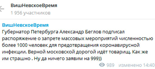 Депутат ЗакСа Борис Вишневский продолжает «паразитировать» на теме распространения коронавируса. Провальные акции протеста заставили парламентария «переобуться в воздухе» - политик решил прекратить призывать граждан к участию в митингах, и начал требовать переноса даты общероссийского голосования. Международная ситуация с распространением пандемии коронавируса продолжает стремительно ухудшаться. По данным на 17 марта известно о более чем 182 тысячах зараженных и около семи тысячах погибших. Все больше стран вводят «карантинные меры» с ограничением передвижений граждан, запретом на массовые сборы людей и закрытием торгово-развлекательных точек. Коронавирусная «лихорадка» сказалась и на политических настроениях в России. Депутат Заксобрания Санкт-Петербурга Борис Вишневский в своем телеграм-канале опубликовал пост, в котором призывает перенести, в связи с распространением коронавируса, общероссийское голосование, назначенное на 22 апреля. ![]() Парламентарий пишет, что в близких к ЧС условиях проведение референдума спровоцирует рост числа заболевших. Хотя пару дней назад у Вишневского была диаметрально противоположная позиция. ![]() В своем посте от 13 марта депутат писал, что власти города запретами массовых мероприятий численностью более тысячи человек якобы демонстрируют страх. Вероятно, политик имел ввиду, что митинг численностью в 999 человек в многомилионном городе сможет негативно сказаться на процессе принятия поправок в Конституцию в связи с чем Смольный «ставит подножки» оппозиции. Однако старания Бориса Лазаревича раскачать народ для участия в митингах прошли в пустую. Пользователи соцсетей раскритиковали желание депутата рисковать чужими жизнями ради собственных политических интересов. ![]() Кроме этого, еще до вступления в силу запрета массовых мероприятий, оппозиция организовала серию провальных протестных акций, которые не вызвали отклика у горожан. ![]() Несколько пикетирующих в разные дни выходили на Невский проспект, Малую Садовую улицу и Сенатскую площадь. Сначала активисты мирно фотографировались с плакатами, потом, не получив нужной поддержки, начали провоцировать представителей правоохранительных органов, что привело 15 марта к задержанию около 20 человек. В отделениях на пикетчиков составили протоколы и отпустили «с миром». Вишневский чутко уловил настроение населения. Отсутствие поддержки на акциях протеста и соцсетях заставили парламентария «переобуться в воздухе». Буквально за пару дней депутат резко изменил свою позицию, вспомнив, что в условиях эпидемиологической опасности людям стоит соблюдать максимальные меры предосторожности. Он даже составил обращение в Роспотребнадзор, в котором потребовал ввести запрет на прикладывание к мощам святых в церквях. Сейчас депутат продолжает паразитировать на теме с пандемией. Однако речи о «заботе о благополучии населения» нет – парламентария заботят только собственный имидж и политические маневры, выгодные для продвижения оппозиционной повестки. Не получив нужной поддержки во время протестных акций, он решил использовать тему с распространением коронавируса для попытки срыва всенародного голосование, которое предварительно состоится только 22 апреля. За месяц ситуация может изменится, и, вполне вероятно, что правительство действит