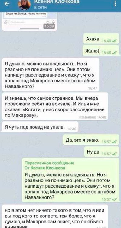 Судя по переписке, Клочкова хотела, чтобы её сотрудничество с Навальным и его штабом осталось в тайне. Такое желание вполне объяснимо, ведь Макаров, в свою очередь, работал с «Ротондой» в рамках своих информационных кампаний. Об этом не единожды сообщалось в СМИ.