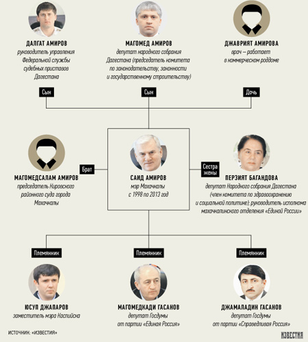 Градоначальник, получивший прозвище Рузвельт, считается вторым по влиятельности человеком на Кавказе после Рамзана Кадырова: все руководители Дагестана ходили к С.Амирову на поклон, утверждает журналистка Юлия Латынина. Решение о его аресте могло быть принято лишь в Кремле, уверены политологи. По масштабам разоблачительная кампания, начавшаяся в Дагестане, сопоставима разве что с "хлопковым делом" в Узбекистане 1980гг. Пока 59-летнему инвалиду инкриминируют соучастие в убийстве следователя, но наблюдатели уверены, что этим дело не ограничится, и мэру могут предъявить еще с десяток преступлений. Под аккомпанемент футбольной баталии Арест С.Амирова произошел в то время, пока весь Дагестан следил за футбольной баталией в Грозном, где махачкалинский клуб "Анжи" боролся с ЦСКА за Кубок страны по футболу. Недавно назначенный врио главы Дагестана Рамазан Абдулатипов также прибыл в Чечню поддержать родную команду. Тем временем в Махачкале развернулась боевая операция с участием сотрудников ФСБ, МВД и СКР. Силовики при поддержке бронетехники и авиации блокировали дом градоначальника. Мэр был немало удивлен визиту следователей, утверждают очевидцы. Однако сопротивляться он не стал и сдался, после чего его этапировали в Москву. Символично, что арест проводился силами московских силовиков, и местные правоохранители узнали об операции постфактум. По словам собеседников "Новой газеты" в ФСБ, иначе арест мог провалиться: местные силовики активно торгуют информацией. Операция прошла спустя несколько дней после встречи Р.Абдулатипова и президента России Владимира Путина. Тогда глава региона пообещал начать кампанию по зачистке от преступности и коррупции высших эшелонов власти. Результаты спецоперации оказались более чем внушительными: помимо С.Амирова, силовики арестовали еще около 10 человек. При этом источники утверждают, что разработка преступников продолжалась несколько месяцев. Прогресс в деле наметился в конце мая, когда силовики арестовали главаря "махачкалинской бандгруппы" Сиражудина Гучучалиева. Последний раскрыл всех подельников и организаторов бандитских акций. Затем последовал арест заммэра Каспийска Юсупа Джапарова, который приходится племянником С.Амирову. Контуры обвинения Согласно официальной позиции СКР, мэр Махачкалы причастен к организации убийства следователя Арсена Гаджибекова, расследовавшего резонансные дела о терактах. Градоначальнику инкриминируют ч.3 ст.33 и ст.295 УК (организация посягательства на жизнь лица, осуществляющего предварительное расследование). При этом в СКР подозревают, что С.Амиров имел непосредственное отношение к так называемой банде Колхозника, организованной прокурорами Каспийска. Стоит отметить, что за С.Амирова заступились его бывшие подчиненные. Так, первый заместитель мэра Махачкалы Баганд Магомедов, назначенный временно исполняющим обязанности мэра, объявил, что операция по аресту начальника прошла с нарушением закона и "крайне цинично". "В момент задержания и проведения обысков никаких санкций и ордеров предъявлено не было. Это потом стали появляться какие-то бумаги", - рассказал врио мэра. Жители города, возмущенные действиями силовиков, даже хотели выйти на митинг в его поддержку, однако власти города убедили сограждан воздержаться от акции протеста. Всего по делу 