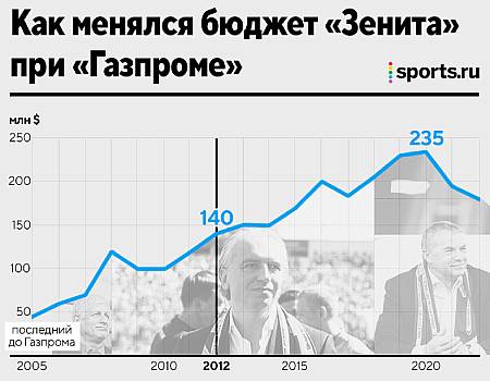 Из этого графика следует, что за 16 лет эпохи «Газпрома» совокупный бюджет «Зенита» составил ориентировочно 2 миллиарда 610 миллионов долларов. Со слов Максима Митрофанова мы знаем, что поступления от компаний группы «Газпром» обеспечивают примерно 50% доходов клуба. По этой грубой пропорции вливания «Газпрома» в «Зенит» с 2006-го по 2023-й можно оценить в 1,305 млрд долларов. К этой сумме стоит добавить разницу между расходами и доходами от трансферов. Траты на новых футболистов нередко не учитываются при описании бюджетов клубов – даже Deloitte не считает их при составлении рейтинга богатейших клубов Европы. Трансферы всегда идут отдельной строкой бюджета. Учитывать их вообще сложно, потому что сделки с игроками не считаются операционными (в бухгалтерском смысле игроки – активы), нередко проводятся в рассрочку (выплаты растянуты на несколько лет) или вообще в кредит. «Если мы считаем, что нам нужен игрок, что приход этого игрока позволяет нам решить определенную задачу, выполнение этой задачи позволяет нам получить дополнительный доход, получение которого будет растянуто во времени, мы идем в банк, берем кредит, игрок позволяет нам решать турнирные задачи, мы зарабатываем и деньги погашаем», – говорил во времена работы в «Зените» Александр Дюков. У «Зенита» сальдо трансферных операций – отрицательное. По данным Transfermarkt, за 16 газпромовских лет «Зенит» купил игроков на 661,25 млн евро, а продал на 314,21 млн. Разница – 347,04 млн евро (409,5 млн долларов). Логично предположить, что покрытие такого дефицита ложится на владельца, фактически – на «Газпром». То же самое можно предположить про выпадающие доходы в тех сезонах, когда «Зенит» не попадал в групповой этап Лиги чемпионов. Призовые от ЛЧ – очень крупная статья доходов, «Зенит» получал до 40 млн евро в год и при планировании трат исходил из постоянного участия в ЛЧ. Получалось не всегда. Например, в сезонах-2016/17, 2017/18 и 2018/19 петербургский клуб довольствовался только Лигой Европы, но на бюджете радикально это не сказывалось. И это можно объяснить только тем, что «Газпром» компенсировал клубу недополученные призовые. В эпоху владельца такие затраты можно грубо оценить в более чем 75 миллионов евро. Если сложить три составляющие – 50% совокупных доходов по оценке Максима Митрофанова, компенсации за трансферы и пропуски ЛЧ – общая сумма расходов «Газпрома» превысит 1,7 миллиарда долларов. Но реальная сумма может быть еще выше и превышать 2 млрд долларов. Пример 2012 года, когда «Зениту» пришлось расписать УЕФА полную информацию о бюджете и источниках его пополнения, показал, что публично озвученные цифры могли серьезно отличаться от истинных. Еще раз взглянем на график. В 2012 году доходы «Зенита» составили 140 миллионов долларов – эта цифра заявлена в материале журнала Forbes об экономике клуба, комментарии для которого давали топ-менеджеры «Зенита». Однако в материалах УЕФА, опубликованных Football Leaks, содержится совсем другая цифра за тот же 2012 год – 171 миллион евро, или 217 миллионов долларов. Разница – 77 миллионов долларов, а реальный доход «Зенита» оказывается выше официально объявленного на 55%! Вклад «Газпрома» и структур, так или иначе с ним связанных, в том году достиг 129,5 миллиона долларов, следует из данных Football Leaks (это 59,7% совокупных доходов «Зенита»). Правда, довольно сложно сказать, сохранилась ли прак