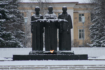 Памятник представляет собой трех женщин — мать, жену и дочь солдата. Стоящая в центре женщина подносит к Вечному огню кедровую ветвь.