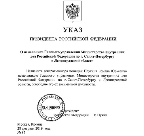 Новым начальником ГУ МВД по Санкт-Петербургу и Ленинградской области президент назначил генерал-майора полиции 43-летнего Романа Плугина, возглавлявшего УВД Южного округа столицы. Плугин должен был занять вакантную сейчас должность начальника ГУ МВД по Свердловской области, но буквально в последний момент его отправили в Северную столицу. УВД Южного округа Роман Плугин, выходец из Главного управления собственной безопасности (ГУСБ) МВД, возглавлял с 2013 года. До его назначения округ считался одним из самых криминальных в сМоскве Достаточно вспомнить, что предшественников генерала Плугина снимали в связи с резонанснымми ЧП. Генерал-майор Виктор Агеев потерял должность в 2009 году после того, как его подчиненный, начальник ОВД «Царицыно» Денис Евсюков устроил массовый расстрел в супермаркете, убив шестерых его посетителей. А назначенный вместо него генерал Александр Продольный отправился в отставку в октябре 2013 году после массовых беспорядков гастарбайтеров, произошедших на овощебазе в Бирюлево. Выдвижению Романа Плугина способствовал нынешний начальника ГУСБ Александр Макаров. Они вместе работали в Рязани, затем в Зеленограде и в Северо-Восточном округе Москвы. Немаловажную роль в карьере Плугина сыграл и его отец - генерал-майор милиции в отставке Юрий Плугин, в свое время удостоенный за участие в боевых действиях в Афганистане звания Героя Советского Союза ((забытую в архивах награду ему вручили, правда, спустя 17 лет), отличился Плугин-старший и в первой чеченской кампании, в которой участвовал в должности замначальника МВД Чечни. Плугину 10 марта исполнится 44 года. Родился в Ставрополе, окончил Рязанский институт права и экономики МВД и Российскую академию госслужбы при президенте России. За время службы в органах внутренних дел был награжден медалью «За доблесть в службе» и медалью «За боевое содружество». В 2013 года Роман Плугин возглавил отдел специальных расследований департамента собственной безопасности ГУ МВД РФ по Москве, что подразумевает кристально чистую биографию. Но руководить «охотниками за оборотнями», как еще зовут сотрудников этого подразделения, Плугину пришлось недолго. 2 декабря того же года президент РФ Владимир Путин подписал указ о назначении Плугина на должность начальника скандально известного УВД по ЮАО. До недавнего времени 43-летнего генерала ждали в Екатеринбурге, где вакантным был пост начальника ГУ МВД. Он уже прошел все согласования и даже смотрины в Екатеринбурге, но судьба в лице президента распорядилась по-своему. Кстати, в Екатеринбурге Плугину готовилась роль чистильщика. Его возможному назначению предшествовали громкие коррупционные дела в самом ГУ МВД Екатеринбурга и Свердловской области. Осенью прошлого года двоих высокопоставленных работника полиции (один из них отставной генерал) арестовали за «крышевание» подпольных казино. Тогда же был задержан еще один высокопоставленный свердловский силовик из МВД за незаконную «прослушку» экс-главы фонда «Город без наркотиков» бывшего мэра Екатеринбурга Евгения Ройзмана. В Нижнем Тагиле и Каменск-Уральске местные полиционеры пытали задержанных, за что поплатились серией уголовных дел. Словом, беспокойное хозяйство ждало молодого генерала Плугина, но не случилось. ![]()
