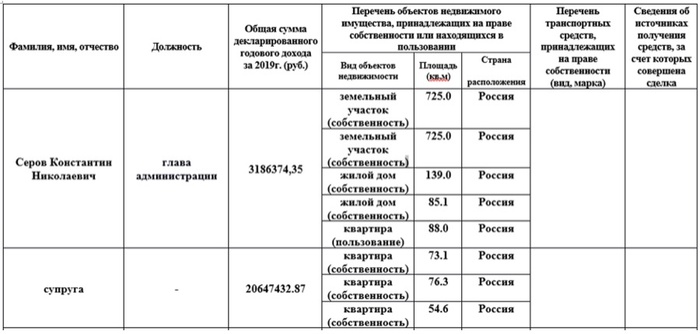 Петербургской Контрольно-счетной палатой было выявлено нецелевое расходование бюджетных средств в МО «Георгиевское» (Фрунзенский район). Речь идет о растрате 14 миллионов рублей, 13 из которых направили на аренду тканных изделий, а также ремонт туалетов и коридоров в здании администрации муниципального округа. Как отмечает сетевое издание newia.ru, признаки коррупции также заметили в администрации района, входящего в МО «Георгиевское». В опубликованной главой Фрунзенского района Константином Серовым декларации указывается заработок в размере 3,2 млн рублей. Примечательно, что с учетом этих данных доход супруги Серова Александры Баландиной составил 20 млн рублей. Помимо 3,2 млн рублей, в отчете чиновника также числятся два земельных участка площадью 1,5 кв.км. На их территории расположены два дома площадью 139 и 85 кв.км соответственно. Впрочем, если сравнивать это имущество с «владениями» Баландиной, становится понятно, что именно она является ключевым активом главы Фрунзенского района. В отчетных документах указывается, что во владении Баландиной находится две трехкомнатных квратиры и одна двухкомнатная. В 2019 году женщина заработала более 20 млн рублей. Такую сумму по праву можно назвать самой высокой среди супругов чиновников соответствующего уровня. Если обратить внимание на предыдущую декларацию, о доходах семьи Серовых можно узнать еще больше интересных деталей. ![]() Еще в 2017 году сумма доходов Баландиной составляла 7 млн рублей, что почти в три раза меньше, чем в 2016-м. Резкий скачок в финансовом аспекте произошел в 2018-м. Уже тогда Серов занимал пост вице-губернатора, но по непонятным причинам декларацию подавать не стал. Столь стремительный рост доходов невозможно назвать простым стечением обстоятельств. Журналисты обратили внимание, что Баландина является гендиректором и единственным учредителем компании «Невское РСУ». Интересно, что 2019 года учредителем была мать супруги Серова — Елена Баландина. Описываемая компания занимается обслуживанием жилых и нежелых зданий, в том числе в рамках государственных контрактов. С 2015 года ее рентабельность уверенно устремилась к нулю. В 2019 году сумма прибыли равнялась 1,6 млн рублей. Это число подтверждает, что источником обогащения семьи Серова является точно не обозначенная организация. В то же время Баландина — учредитель ООО «К-2». Дела у данной компании идут существенно лучше, чем у «Невского РСУ», однако прибыль в размере 5 млн рублей точно также не может объяснить 20-миллионные доходы супруги Серова. Как правило, столь резкий скачок доходов у самих чиновников или членов их семей может быть обоснован простейшими сделками. Например, продажей ждилья, ценных бумаг или автомобилей. Однако в составе значимого имущества главы Фрунзенского района и его супруги не меняется почти 10 лет, когда Серов впервые подал декралацию. Изучив отчет Баландиной за 2017 год, можно обнаружить еще один примечательный момент — исчезновение иномарки BMW X6 с государственным номером О111ОА98. Нет никакой информации о том, был ли автомобиль продан или просто переписан, однако с 2019 года владельцем машины значится Роман Серов — брат главы Фрунзенского района. Такой же автомобиль, но с другим госномером — С111СС178 — записали на мать супруги Серова Елену Баландину. СМИ указывают, что машина находится в пользовании вов