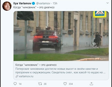 Как отмечает Варламов, БМВ с непростым регистрационным знаком принадлежит семье высокопоставленного чиновника, а управляет им лично Константин Серов.