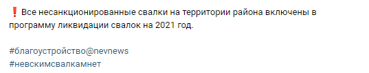 Власти Невского района Петербурга публикуют недостоверную информацию о ликвидации незаконных свалок
