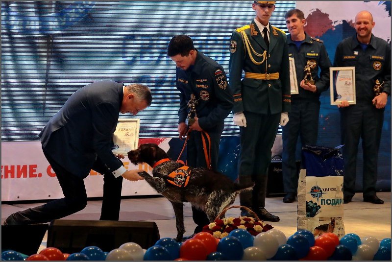 Во время торжественной церемонии глава региона пожал руку лучшему кинологу МЧС и лапу его четвероногому другу, который тоже отметился настоящим «мужским» рукопожатием.![]()