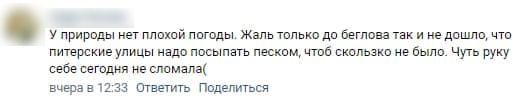 пожаловались на отсутствие песка на скользких дорогах и тротуарах в Петербурге.