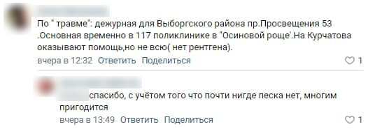 контактами травмпунктов в разных районах Северной столицы.
