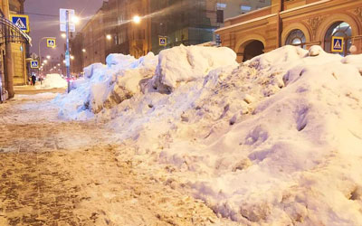 Петербуржцы возмущены огромными сугробами, опасной гололедицей и свисающими с
