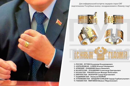 Журналистов заинтересовало необычное кольцо на руке президента Белоруссии Александра Лукашенко. Они выяснили, что такие же кольца с надписью «С Новым годом» получили все присутствующие на саммите главы стран-участниц Содружества.