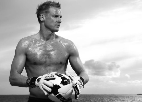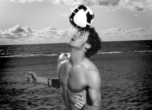 ![]() Несмотря на январские холода, футболисты не прикрывают свои волосатые тела, обильно политые неизвестной смазкой, изображающей, видимо, пот от усиленных тренировок, невольно воскрешая в памяти героический подвиг генерала Дмитрия Карбышева, умученного в концлагере поливанием водой на морозе. Очевидно, эту же ассоциацию имел в виду и фотограф, выполнивший снимки в ностальгической черно-белой гамме, отсылающей аудиторию не то к фильмам Лени Рифеншталь, не то к эстетствующему журналу для гомосексуалистов.
