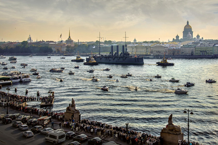 Петербуржцы проводили "Аврору" на судоремонтный завод в Кронштадте. Точную дату возвращения обновленного крейсера сегодня не готов назвать никто. Тем не менее, люди, которые последние несколько лет боролись "за живучесть корабля", в это воскресенье осторожно выдохнули. Теперь главная задача крейсера и его экипажа – пережить ремонт и вернуть "Аврору" на место ее вечной стоянки. Утром 21 сентября акватория Невы у Петровской набережной опустела. Ровно в 10 утра, на глазах у высыпавших на набережные жителей города, буксиры Ленинградской военно-морской базы увели гордость российского флота в кронштадтские доки. Ранее на пресс-конференции должностных лиц, ответственных за судьбу «Авроры», прошедшей в четверг в Центральном военно-морском музее, мнения о сроках возвращения «Авроры» петербуржцам кардинально разошлись. Глава управления культуры Минобороны выразил надежду, «…что в год 60-летия Центрального военно-морского музея, в 2016 году, крейсер займет свое место на стоянке». В отличие от него, и.о. директора ОАО «33 СРЗ» (головного исполнителя работ по ремонту крейсера) Илья Самарин четко заявил, что через 45 суток «Аврору» вернут к Петроградской набережной. «Новодела не будет. Мы выполним обычный ремонт подводной части корабля, замену арматуры 1987 года», – сказал он. Предельно краток был и командир ЛенВМБ Олег Журавлев, чей экипаж сегодня несет службу на корабле. Военные моряки обеспечат безопасную буксировку «Авроры» в Кронштадт и обратно, будут контролировать ход ремонтных работ и принимать качество их исполнения у заводчан, согласно техническому заданию. К сожалению, в этом техническом задании о реэкспозиции музейной составляющей музея нет ни слова.