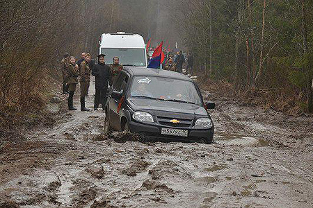 В Лахденпохском районе Карелии застрял в грязи автопробег, посвященный 70-летию Победы в Великой Отечественной войне.