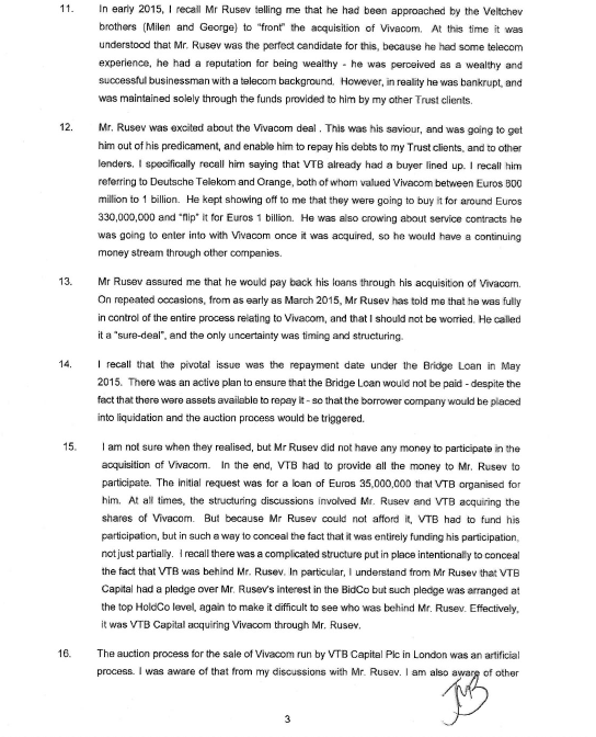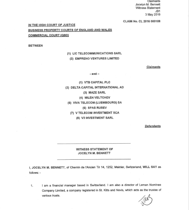 В английском суде ключевой свидетель Джойслин Беннет дала сенсационные показания о том, что «ВТБ Капитал» скрыл свое участие в аукционе по продаже крупнейшего болгарского оператора связи Vivacom. Компании Empreno (BVI) и LICT (Люксембург), принадлежащие российскому бизнесмену Дмитрию Косареву, с 2016 года оспаривают продажу «ВТБ капиталом» самому себе по крайне заниженной стоимости крупнейшего болгарского оператора связи Vivacom. Фактически произошел рейдерский захват актива стоимостью около $1 млрд. топ-менджерами британской «дочки» госбанка ВТБ «VTB Сapital» Юрием Соловьевым и Алексеем Яковицким, считают истцы. Напомним, оператор Vivacom был продан в ноябре 2015 года за 330 млн. евро, хотя при этом стоимость оператора была намного больше. Компанию приобрел болгарский бизнесмен Спас Русев, однако на самом деле за ним стоял «ВТБ Капитал». В феврале 2016 года компании акционера Vivacom Дмитрия Косарева подали иск в Лондоне к британской «дочке» «ВТБ капитала» «по факту незаконного захвата и продажи Vivacom аффилированной стороне» по заниженной цене. По данным истцов, акции болгарского оператора связи купила люксембургская VivaTelecom, которую номинально возглавлял некий Спас Русев, а юридически владел консорциум инвесторов, в том числе «ВТБ капитал». Истцы сочли продажу мошенничеством и потребовали, чтобы акции или их стоимость были возвращены компании V2. Представитель Косарева оценивает убытки в сумму не менее 250 млн. евро. В апреле 2018 года компания V2 вновь подала иск в английский суд к компании VivaTelecom, косвенно владеющей болгарским сотовым оператором Vivacom. Требования прежние: возврат акций оператора Vivacom либо восстановление их ценности. Судя по всему, повторный иск в Высокий суд Лондона, может оказаться более успешным для истцов, а для ВТБ грозит обернуться убытком в сотни миллионов долларов. Ключевой свидетель 14 мая 2019 года в ходе открытого заседания в Коммерческом суде Англии и Уэльса по этому делу вскрылись новые сенсационные доказательства - свидетельские показания Джойслин Беннет. Джойслин Беннет - гражданка США, постоянно проживающая в Швейцарии, является директором компании Leman Nominee Company Limited. Эта компания выступает профессиональным доверительным собственником в отношении многочисленных трастов для разных клиентов, в том числе и тщательно законспирированных «ф» «ВТБ Капитал». Свидетельские показания г-жи Беннет подтвердили опасения компаний-истцов Empreno Ventures Limited и LIC Telecommunications Sarl, бенефициаром которых является Дмитрий Косарев, которые были озвучены в рамках продолжающихся с 2016 года судебных процессов относительно так называемого «аукциона» по продаже Vivacom, сообщило агентство Рейтер. В частности, г-жа Беннет подтвердила фиктивный характер «аукциона», проведённого «ВТБ Капитал» в 2015 году. Смысл аферы: продать телеком-оператора аффилированному с самим ВТБ и ее топ-менеджерами покупателю - компании VivaTelecom (Luxembourg) S.A. по существенно заниженной цене с целью немедленной перепродажи стратегическому инвестору, но уже по рыночной цене. ![]() Г-жа Беннет также утверждает, что скандально известный болгарский бизнесмен Спас Русев в этой сделке фронтовал «ВТБ Капитал», за неимением средств получая от банка все необходимое финансирование: «ВТБ должен был предоставить деньги господину Русеву для участия в аукционе по приобретению Vivacom ... потому что господин Рус