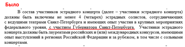 Комитет по культуре Правительства Санкт-Петербурга передумал звать на концерт в Волгограде звезд Северной столицы «друзей Беглова». Соответствующие правки были внесены в тендерную документацию мероприятия. Ранее принять участие в тендере могли лишь те потенциальные организаторы, в активе которых имелся пул артистов, регулярно выступающих на мероприятиях губернатора Александра Беглова. В конце марта Комитет по культуре объявил тендер на организацию концерта в Волгограде, приуроченного к 80-летию прорыва блокады Ленинграда. В соответствии с техническим заданием, от победителя требуется устроить полуторачасовой концерт с участием петербургских звезд эстрады. Стартовая цена лота составила 2,8 миллиона рублей. Одним из обязательных требований Комкульта оказалось участие в концерте только тех исполнителей, которые уже выступали на мероприятиях с участием губернатора Александра Беглова. Обоснование такого требования в техническом задании не приводилось, а в открытых источниках отсутствует информация о возможном визите Беглова в Волгоград в день концерта. ![]() Из-за отсутствия каких-либо обоснованных причин такое требование может расцениваться как нарушение антимонопольного законодательства. Нами были направлены соответствующие запросы в Прокуратуру и Федеральную антимонопольную службу с просьбой провести проверку действий Комитета по культуре. Однако еще до получения официальных комментариев от надзорных органов чиновники поспешили внести изменения в конкурсную документацию тендера. В редакции от 5 апреля спорное требование исчезло. ![]() Иных изменений в новой редакции не оказалось. Вероятно, в Комкульте признали незаконность указанного требования, но остается открытым вопрос, по какой причине оно было включено в исходную документацию. Крайне маловероятно, что произошло это случайно. Тем более, что у губернатора Александра Беглова действительно имеется свой пул артистов, в который входят в том числе и его личные друзья, такие как, например, саксофонист Игорь Бутман. Также на концертах с участием Беглова регулярно выступают певица Зара, оперный исполнитель Григорий Чернецов и другие. Участие звезд оплачивается из городского бюджета. Так, поездка губернатора со своими эстрадными друзьями в Узбекистан обошлась петербуржцам в 11 миллионов рублей. Из них 3,5 млн достались Заре, 2,8 млн ушли Игорю Бутману, а Эдуард Хиль-младший запросил «всего» 628 тысяч рублей за выступление. Как бы то ни было, исключение «губернаторского» требования из конкурсной документации шаг, конечно, позитивный, но интрига сохранится до подведения итогов тендера. Вполне возможно, что «правильный» организатор сможет победить за счет иных нюансов.