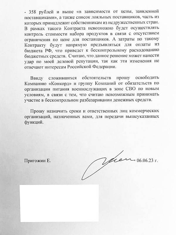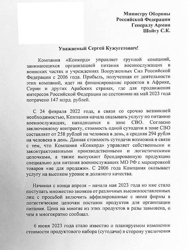 P6 обнародовали письмо Пригожина к Шойгу, в котором бизнесмен просит