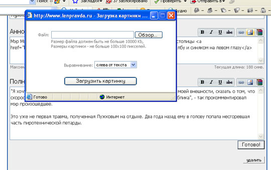 И вы увидите довольно простую админовскую программку, с помощью которой и размещаются тексты и фотографии на сайте "Ленинградская правда" ее "Авторами":