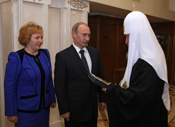 24 мая 2009, 18:10 Премьер-министр России Владимир Путин с супругой Людмилой Путиной поздравили патриарха Московского и всея Руси Кирилла с Днем тезоименитства. Для этого они прибыли в Храм Христа Спасителя. Путин подарил патриарху настольную икону с изображением Георгия Победоносца, поражающего змея, сообщает пресс-служба правительства РФ. Глава Русской Православной Церкви, в свою очередь, поблагодарил премьера за "символ победы добра над злом".