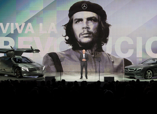 Как отмечает портал msnbc.com, во время выступления Дитера Цетше, главы подразделения концерна, на экране появилась фотография Че Гевары. На месте звезды, которая украшает берет аргентинского коммуниста в оригинале, маркетологи Mercedes-Benz разместили корпоративный логотип марки.