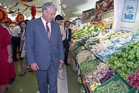 Ельцин изучил ассортимент, узнал у покупателей, как часто и на какую сумму они закупаются, уточнил у продавцов необходимо ли им получать специальное образование для подобной работы, познакомился с работой кассового аппарата и даже попробовал пудинг. По словам журналиста Хьюстон Кроникл, Ельцин был в восхищении от магазина и все время разводил руками от удивления. В конце он заявил, что даже у членов Политбюро нет такого изобилия. Даже у Горбачева нет - сказал Ельцин.