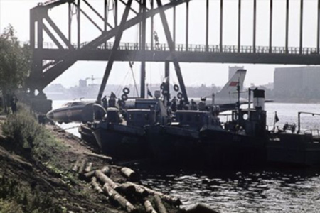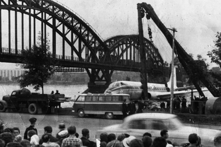 Позднее специальный пароход с водосливом стал откачивать воду из самолёта. Однако вода из пробоин прибывала быстрее, и, как результат, к утру Ту-124 затонул. На другой день под самолёт подвели понтоны и буксиром оттащили на территорию нынешнего комплекса «Ленэкспо», к Шкиперскому протоку, где базировалась войсковая часть.