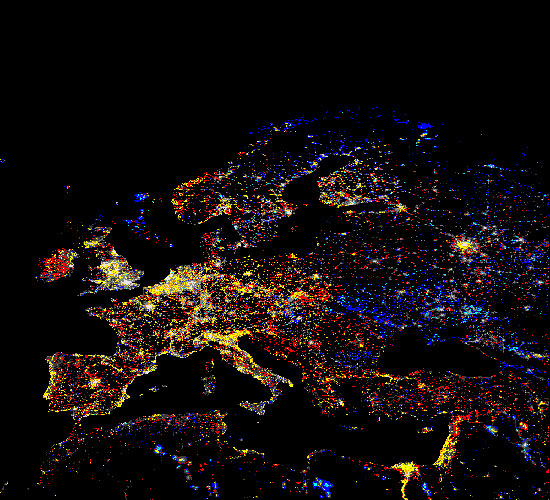 Предварительный анализ серий спутниковых снимков ночного свечения выявил, что освещение может расширяться и сокращаться в зависимости от экономической ситуации. Растущие кольца света окружают многочисленные города-центры урбанизации и линейные световые паттерны наблюдаются в странах, к примеру, США, ОАЭ, Китая, и сокращение освещения на большей части территорий бывшего СССР. По общей картине видно, как города и сельская местность Европы наращивают светимость, а территории быв. СССР загибаются. Зато ярко вспыхивают Москва и Питер, и цепь городов на магистрали Москва-СПб. Вот такие тенденции в общем. Привет Чубайсу!