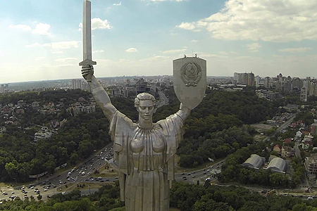 Монумент-скульптура «Родина-мать», которая находится на правом берегу Днепра, установлена на территории Музея истории Украины во Второй мировой войне. В 1981 году комплекс открывал генсек ЦК КПСС Леонид Брежнев. В одной руке у статуи 16-метровый меч весом девять тонн, в другой — щит с гербом СССР весом 13 тонн. Общая высота женской фигуры с постаментом — 102 метра.