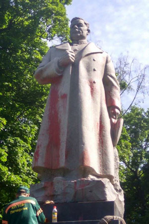 В Киеве красной краской измазали памятник генералу Ватутину