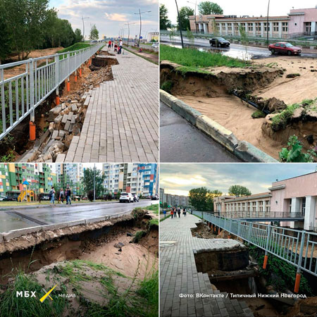 В Нижнем Новгороде начала разрушаться инфраструктура, построенная специально к чемпионату мира по футболу. Из-за дождей в городе размылась и развалилась Волжская набережная.