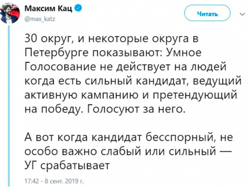 Ночь после выборов выдалась на редкость тяжелой: ОПГ скандального блогера Алексея Навального использовала последнюю возможность, чтобы дискредитировать избирательную систему. Однако коварный план провалился. Казалось, избирательные участки закрыты, а значит, больше никто не сумеет вмешаться в выборный процесс. Члены комиссий после 20.00 приступили к подсчету голосов. Однако несистемная оппозиция не собиралась сидеть «сложа руки». Единый день голосования в Петербурге был достаточно напряженным. Во-первых, одновременно проходили и губернаторские и муниципальные выборы. Во-вторых, за весь день было разоблачено огромное количество фейков о «нарушениях» на избирательных пунктах. Но стоит отдать должное властям и наблюдателям – горожане голосовали в достаточно спокойной обстановке, и реальных нарушений выявлено не было. Правда, как только комиссии приступили к подсчетам голосов, со стороны Алексея Навального и его ОПГ посыпались очередные обвинения. Сначала блогер, находящийся в Москве, утверждал, что УИКи почему-то специально тянут время. При этом просил своих соратников «не сдаваться». И в Петербурге нашлись те, кто ему «подпевал». ![]() После «легкого захода» с обвинений в «нарушении принципа непрерывности подсчета голосов», Навальный переключился на «тяжелую артиллерию». Он не гнушался обвинять членов комиссий в попытке украсть голоса «демократической общественности». И даже в провокациях против самих кандидатов: кто-то якобы украл пачку голосов, кого-то облили зеленкой, кому-то нагрубили. Руководитель одного из штабов блогера Александр Шуршев вообще заявил, что власти намеренно приказали неким кавказцам прийти к нему, наблюдателю на одном из УИКов, чтобы закрыть весь обзор спинами. ![]() Такие заявления на самом деле выглядят нелепо. Хотя бы потому, что в одном из самых сложных округов – МО «Екатерингофский», лидирует вся выставленная Навальным команда. ![]() Кстати, с другими представителя оппозиционного направления дела обстоят не хуже. Так, например, уже известно, что на острове Декабристов пять мест достались команде от партии «Яблоко». Комментируя подобное поведение ОПГ Навального, политтехнолог Максим Кац заявил: предложенная блогером схема работает только при условии, что кандидат изначально «никакой». ![]() Резюмируя вышесказанное, отметим: если бы члены комиссий «не тянули время, а быстро подсчитали голоса» по указке главы «ФБК», то вопросов к ним было бы еще больше. И такой опыт, к слову, тоже был: работников УИКов обвинили в халтуре. Мол, итоги огласили слишком быстро, значит, результаты нарисовали. Естественно, при этом никого из ОПГ не интересовало мнение обычных граждан.
