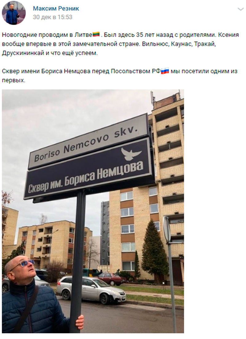 Депутат Законодательного Собрания Петербурга Максим Резник на новогодние праздники отправился на лечение от наркозависимости в курортный город Друскининкай на юге Литвы. Об этом нашему изданию сообщил источник, близкий к семье петербургского политика. По информации нашего осведомителя, Максим Резник отправился в наркоклинику, чтобы пройти курс очищения организма от наркотических веществ. Возможно, что после этого депутат ЗакСа согласится пройти текст на наличие в крови запрещенных веществ и попытаться опровергнуть информацию об употреблении им наркотиков. Достоверность сведений источника подтверждает пост Резника на его странице во «ВКонтакте», где депутат сообщает, что вместе с супругой на новогодние праздники отправился в Литву. ![]() Кроме туристических Вильнюса и Каунаса посетил местную здравницу Друскининкай. В этом городе мы также нашли клинику по адресу M. K. Čiurlionio g. 82, LT-66144, где лечат от наркотической зависимости. ![]() Напомним, что депутат петербургского ЗакСа Максим Резник был фигурантом наркотического скандала, произошедшего весной и летом 2019 года. СМИ сообщали, что политика задержали из-за его неадекватного поведения на демонстрации 1 мая. Предположительно, на празднике Резник мог находиться в состоянии алкогольного опьянения. Позднее издание «Невские новости» опубликовало видеозаписи, где видно, как Резник нетипичным способом через кулак курит самокрутку, которая могла содержать запрещенные вещества. Депутат Госдумы Виталий Милонов предложил Резнику вместе сдать кровь на наличие в ней наркотических веществ, однако инициатива была проигнорирована. Позднее журналисты ФАН сообщили, что Резник попытался скрыться от наркоскандала в столице Чехии - Праге. Государство известно своим более лояльным, чем в России, отношением к наркотикам. По информации СМИ, в аптеках страны можно законно купить наркотические вещества, так как хранение и употребление декриминализованы. Также журналисты ФАН выкупили у супруги Резника куртку депутата и отдали ее в правоохранительные органы. Полицейские нашли следы запрещенных веществ на куртке депутата и пригласили его в отделение вместе с супругой. Однако в отделении Резник отказался беседовать с сотрудниками правоохранительных органов, сославшись на депутатскую неприкосновенность.