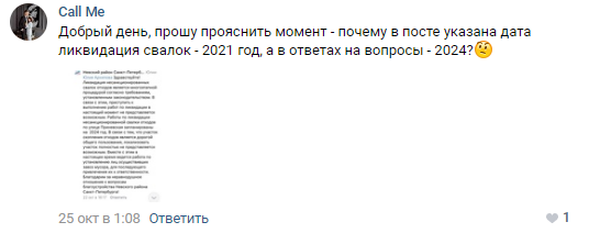 Администрация Невского района отчитывается о проделанных работах в рамках процесса ликвидации несанкционированных свалок, но при этом, отвечая на замечания о разрастающихся скоплениях мусора, не может указать точные сроки завершения всех мероприятий, чем вводит местных жителей в заблуждение. Власти Невского района продолжают публиковать на официальной странице администрации в социальной сети информацию о результатах продолжающейся борьбы с незаконными свалками. Так, 24 октября стало известно о вывозе с Приневской улицы 15 контейнеров с отходами, что составляет более 400 кубометров мусора. При этом в публикации уточняется, что «все несанкционированные свалки на территории района включены в программу ликвидации свалок на 2021 год». ![]() ![]() Однако местные жители обращают внимание на несоответствие этого обещания с ранее опубликованными ответами администрации на жалобы горожан. ![]() Пользователь совершенно справедливо указывает на расхождение в датах, ссылаясь на комментарии к посту от 21 октября, в котором также утверждается, что Невский район будет избавлен от незаконных свалок в 2021 году. Но, отвечая на замечание одной из местных жительниц относительно растущей свалки вдоль все той же Приневской, администрация заявляет, что работы на этой улице запланированы на 2024 год. ![]() Люди также не верят публикуемым администрацией данным о якобы пресечении несанкционированного складирования строительных и бытовых отходов на участках Дальневосточного проспекта и ликвидации нескольких незаконных свалок в районе Октябрьской набережной, на улице Ольги Берггольц и Заводской. По мнению жителей района, местные власти тратят время и бюджетные средства не на решение актуальных проблем, которые беспокоят население, а на проекты, не требующие оперативного реагирования и принятия срочных мер. ![]() Таким образом, можно предположить, что представители Администрация Невского района либо намеренно дезинформируют жителей через соцсети в попытке уйти от неудобных вопросов, либо сами запутались в своих неправдоподобных обещаниях. Стоит отметить, что серьезные проблемы с несанкционированными свалками в Невском районе наблюдаются уже не первый год. В частности, администрация под управлением Алексея Гульчука отказывается решать проблему с рекультивацией золоотвала на пересечении Зольной улицы и Дальневосточного проспекта.
