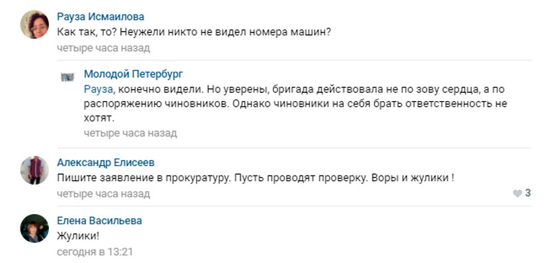 Жители Приморского района 25 лет назад высадили на улице Шаврова елочную аллею. Зеленые насаждения прижились и росли четверть века, вплоть до 18 декабря этого года. В этот день по адресу прибыли рабочие со спецтехникой. Деревья были выкорчеваны, после чего перевезены на территорию храма Святителя Николая на Арцеуловской аллее. Есть основания полагать, что сделано это было по распоряжению районной администрации. Общественное движение «Молодой Петербург» обратило внимание, что на сайте по благоустройству размещена всего одна заявка на подобные работы. Заказчиком значится МО «Юнтолово». Однако муниципалы утверждают, что не имеют никакого отношения к инициативе по перевозке елей. ![]() Кроме того, возглавляемая Николаем Цедом администрация Приморского района уверяет, что непричастна к пересадке деревьев. Также в пресс-службе главы администрации заявили, что не знают, кто осуществлял работы. Несмотря на парадоксальную ситуацию, в администрации не панируют проводить проверку в связи с этим инцидентом. ![]() ![]() Важно отметить, что в церкви, куда перевезли ели, рассказали, что доставка была осуществлена по инициативе местной администрации. Но даже несмотря на такое прямое заявление, администрация Цеда не спешит брать ответственность на себя. Местные жители считают, что произошел факт хищения. Некоторые пользователи социальных сетей призывают обратиться в прокуратуру. ![]() При этом в церкви уже успели извиниться перед жителями Приморского района и пообещали заботиться о деревьях. Открытое обращение было опубликовано на странице храма в соцсети. «Высадка деревьев не была запланирована нашим приходом и тем более настоятелем. Это не было нашей просьбой и волеизъявлением, - подчеркивается в обращении. - Мы приняли эти деревья в дар». Ранее жители Петербурга уже обращали внимание на безответственное отношение Цеда к вопросу о зеленых насаждениях. Так, глава района не принял никаких мер для недопущения вырубки деревьев в Юнтоловском заказнике. Вместо реальной деятельности он создает видимость работы, совершая показательные «благотворительные» обходы.