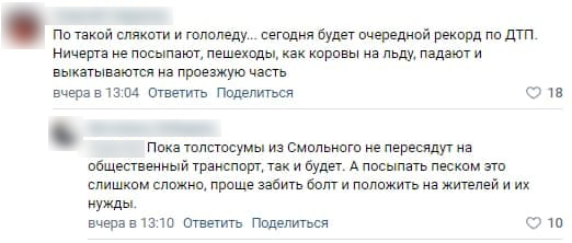 Пользователи соцсетей жалуются не необработанные песком дороги в Петербурге