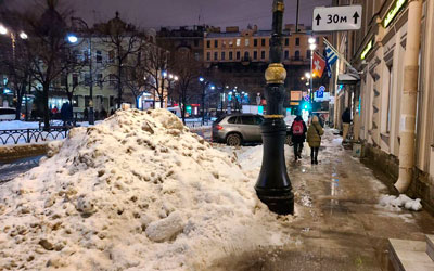Петербуржцы возмущены огромными сугробами, опасной гололедицей и свисающими с