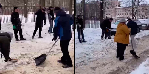 Петербуржцам пришлось взяться за лопаты во время ожидания коммунальщиков