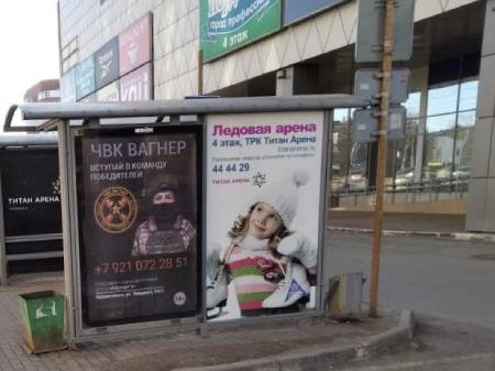 остановках Архангельска появились рекламные плакаты «Вагнера» с номером