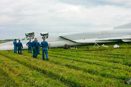 Самолет "снес" шасси, экипаж серьезно не пострадал.