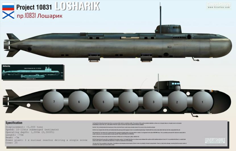 АС-12, или, как её называют на флоте, «Лошарик», – это российская атомная глубоководная станция. Она не несёт на своём борту никакого вооружения. Глубина погружения станции может достигать 6000 метров. Может использоваться для специальных операций различного характера. Строительство «Лошарика» началось ещё в 1988 году, однако в 1990-е годы из-за нехватки финансирования было остановлено и продолжено лишь в начале 2000-х годов. Как сообщает портал Тopwar, большинство россиян, да и весь остальной мир узнали об этой уникальной субмарине в конце сентября 2012, когда состоялась исследовательская экспедиция под названием «Арктика-2012», по результатам которой планировалось подать в комиссию ООН по морскому праву заявку на расширение подконтрольной Российской Федерации арктической зоны. В данной экспедиции приняли участие ледоколы «Диксон» и «Капитан Драницын», а также уникальная атомная глубоководная станция АС-12 проекта 10831 «Калитка», которая более известна, как «Лошарик». Глубоководная станция занималась сбором образцов породы и грунта на глубине в 2,5-3 км. на протяжении порядка 20 дней. «Предполагается, что лодка приписана к Северному флоту России, при этом не подчиняется его командованию. АС-12 «Лошарик» входит в состав Главного управления глубоководных исследований Минобороны РФ, которое более известно как «Подводная разведка» и подчиняется непосредственно Министру обороны страны. Корпус глубоководной станции собран из высокопрочных титановых отсеков, имеющих шарообразную форму, в которых реализован принцип батискафа. Все отсеки лодки соединены между собой проходами и находятся внутри лёгкого корпуса», -пишет военный портал. ![]() Подлодка "Лошарик" была спущена на воду в августе 2003 года со стапелей цеха № 42 государственного унитарного предприятия (ГУП) "ПО "Севмашпредприятие" (Северодвинск, Архангельская обл.). Торжественная церемония вывода подводной лодки из цеха состоялась в условиях повышенной секретности в присутствии руководства завода и главнокомандующего Военно- морским флотом России адмирала флота Владимира Куроедова. Строительство лодки было заложено в 1988 году и шло 15 лет из- за нехватки финансирования. По некоторым данным, это был совместный советско- американский проект по разработке подводных средств спасения. Однако потом США отказались от совместной разработки и финансирования данного проекта.
