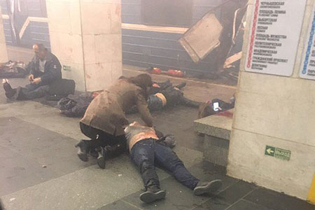 В подземке Санкт-Петербурга прогремели два взрыва. Сообщается о взрывах на станции «Сенная площадь» и на станции «Технологический институт». По меньшей мере десять человек погибли и более 50 пострадали. Метрополитен Петербурга подтвердил информацию о взрыве в вагоне, передает «Интерфакс». «Станции "Технологический институт" и "Сенная площадь" закрыты на вход и выход. Поезда следуют без остановки. Происходит эвакуация пассажиров со станций, есть пострадавшие. Предположительно, в вагоне произошел взрыв неустановленного предмета», — говорится в сообщении. ![]() Очевидцы сообщают, что на синей ветке в Санкт-Петербурге взорвался центральный вагон метро. Пресс-служба Генпрокуратуры России распространила официальный релиз о взрывах в метро Санкт-Петербурга. «Прокуратура города Санкт-Петербурга начала проверку в связи со взрывом в вагоне на платформе станции метрополитена "Технологический институт". На место происшествия для координации действий правоохранительных органов уже прибыл прокурор города Сергей Литвиненко. Ход доследственной проверки по данному факту поставлен на особый контроль прокурора города», — отмечается в сообщении. ![]() На данный момент закрыты семь станций синей ветки метрополитена Санкт-Петербурга, передает РИА Новости. Президент России Владимир Путин выразил соболезнования родным и близким погибших при взрывах в петербургском метро, сообщает РИА Новости. Путин обсудил с директором ФСБ Александром Бортниковым ситуацию со взрывами в метро. Путин назвал три версии взрывов в метро Петербурга. Президент России Владимир Путин заявил, что рассматриваются все версии произошедшего в метро Санкт-Петербурга. Он уточнил, что речь идет не только о терроризме, но и бытовой и криминальной версиях. ![]() СМИ сообщают, что все станции метро Санкт-Петербурга закрыли из-за раздавшихся взрывов. По данным источника «Интерфакса», взрывное устройство «было оставлено» в вагоне метро. Версия о смертниках пока не подтверждается. Один ребенок уже эвакуирован на вертолёте с места взрыва на станции метро «Сенная Площадь», его состояние крайне тяжёлое. Взрыв будет расследовать Главное управление СК РФ по расследованию особо важных дел, в Петербург направлена группа опытных следователей и криминалистов центрального аппарата, сообщил в ведомстве. ![]() Источник «Интерфакса» подтвердил, что на станции метро Санкт-Петербурга «Площадь восстания» было обнаружено не сработавшее взрывное устройство. На этой станции находится главный железнодорожный вокзал Петербурга — Московский. Свидетельница произошедшего студентка Полина рассказала, что взрыв прогремел между станциями «Сенная» и «Технологический институт». «Мы ехали с учебы в соседнем вагоне. В это время в вагоне было достаточно много людей: все сидели, многие стояли. Взрыв прогремел между станциями. Был оглушительный хлопок, потом резкий запах, дым. Мы сразу же перешли в конец вагона, образовалась давка. Двум женщинам тут же стало плохо и они упали в обморок. Все произошло на ходу, поезд не останавливался. На «Технологическом институте» все вышли. Мы увидели, что соседний вагон раскурочен, окна разбиты, нет света, кровь», — рассказала девушка. ![]() Одна из погибших скончалась прямо на операционном столе, пишет «Фонтанка.ру». Это женщина 20 лет. Петербургский аэропорт Пулково пер