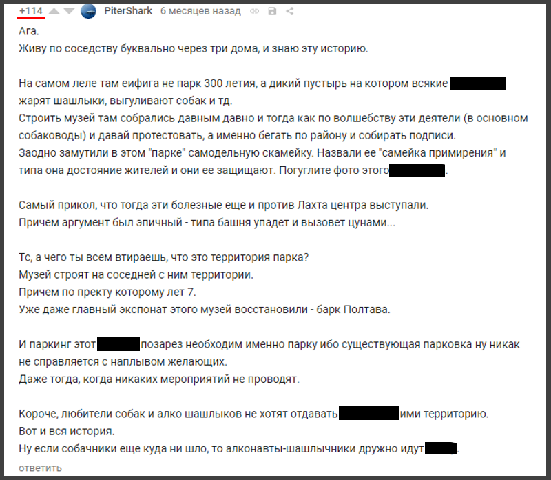 Со спадом пандемии коронавируса COVID-19 в России жизнь в стране начала возвращаться в привычное русло, но довольны этим оказались не все. Так, в Санкт-Петербурге депутат Законодательного собрания от партии «Яблоко» Борис Вишневский возмутился возобновившейся стройкой рядом с парком 300-летия Санкт-Петербурга. Вишневский два года «не знает» о постройке линкора в Петербурге На своих страницах в соцсетях он назвал возобновившуюся стройку «какими-то работами» и поспешил организовать 5 июля народный сход, чтобы разобраться в ситуации. Но в чём именно решил разбираться Вишневский – не ясно. Ещё в конце июня в СМИ появилась информация, что напротив дома 163 по Приморскому проспекту возобновится строительство Культурно-исторического комплекса «Парусник «Полтава». Об этом рассказал командор Яхт-клуба Санкт-Петербурга Владимир Любомиров, под руководством которого и была создана точная копия первого линейного 54-пушечного корабля Балтийского флота «Полтава». ![]() Как отметил Любомиров, новый линкор был создан в полном соответствии с исторически достоверными технологиями, поэтому срок службы такого корабля составляет всего 20-30 лет. Однако его можно существенно увеличить, если стоять корабль будет в специальном доке, который можно регулярно осушать. Именно такое сооружение будет построено рядом с парком 300-летия. Также в комплексе предусмотрены выставочные и музейные площади для экспозиций о становлении российского флота. Как и строительство самого линкора, комплекс под него создаётся полностью на деньги «Газпромома». Выделено порядка 5 миллиардов рублей, которые поступят застройщикам до конца 2020 года. Что интересно, сообщение о финансировании проекта появилось в СМИ ещё в мае, тогда Вишневский также делал вид, что не знает о постройке комплекса. А Главгосэкспертиза одобрила план строительства и вовсе в 2018 году. Учитывая вышеизложенные факты, депутату Вишневскому пришлось бы очень постараться, чтобы не суметь найти информации о проекте. Вот только ни в соцсетях, ни в СМИ Вишневский, выступающий за культурное развитие Петербурга и за защиту истории города, ни разу не упоминал о постройке «Полтавы». Складывается ощущение, что он целенаправленно избегает этой темы. Также он не упоминает и о возведении комплекса для уникального корабля. Вместо этого он предпочитает запугивать жителей Приморского района, что начавшиеся работы приведут к застройке парка 300-летия. Но и эта версия депутата основана на замалчивании фактов. Пустырь, который 5 лет был не нужен Парком Вишневский и его коллеги по «градозащитной» тематике называют пустырь, который в далёком 1995 году был включён в границы парковой зоны, но парком так и не стал. В 2010 году заброшенный участок правительство передало под строительство стадиона для хоккейного клуба СКА, тогда этот факт никого не возмущал. Даже сам Вишневский отмечает это в своей записи, говоря всего о 5 годах борьбы. Десять лет назад, с одобрения Заксобрания, Комитет по градостроительству и архитектуре перевёл указанную зону из категории Р2 (рекреационная зона зелёных насаждений общего пользования с возможностью возведения плоскостных спортсооружений) в Р0 (рекреационная зона спортивных сооружений), что закреплено в Генплане развития Петербурга от 23 марта 2010 года. Тогда же участок был выведен из списка зон зелёных