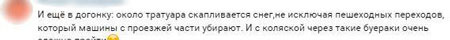 Другой житель города на Неве сообщил, что на набережной канала Грибоедова в самом центре Петербурга на проезжей части и тротуаре все еще не проводилась уборка снега. Кроме того, в комментариях граждане отмечают, что чистить автомагистрали необходимо в ночное время, когда дороги свободны. Пользователи также пишут, что на тех участках, где спецтехника все же расчищала улицы, остается еще много снега. В частности, сугробы все так же лежат на пешеходных переходах, создавая препятствия, прежде всего для инвалидов, пожилых людей и горожан с колясками.