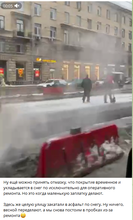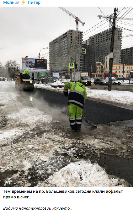 Петербуржцы удивились «нанотехнологиям» по укладке асфальта в снег
